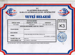 ŞİRKETİMİZ ULAŞTIRMA BAKANLIĞINDAN K3 Yeterlilik Belgesine sahiptir.